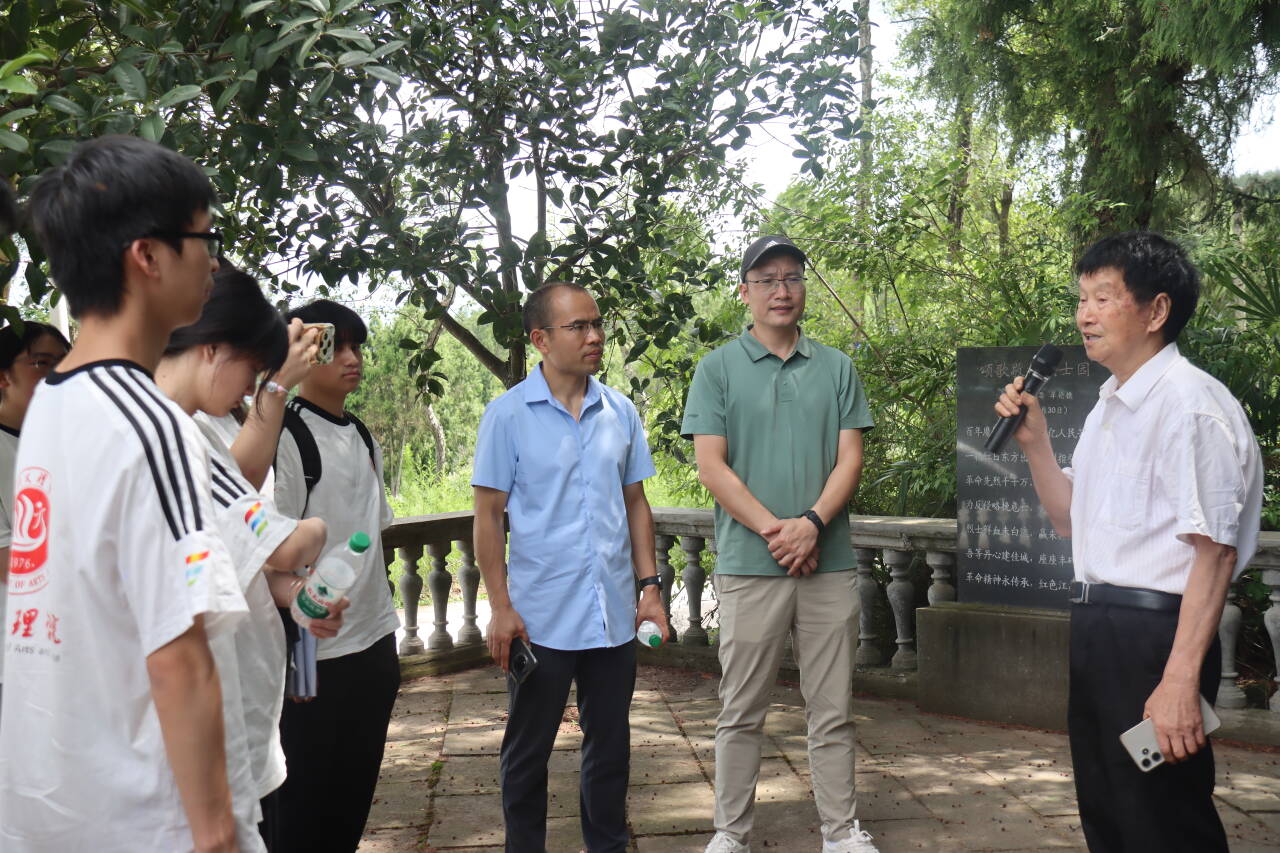 活动第二站是嘉龙村青凤寨烈士陵园。陵园内,苍松掩映的墓碑庄严肃穆,耄耋之年的老党员牟伦德轻抚墓碑,介绍了自己扎根乡土的奋斗岁月,讲述了该村红军牟现图同志“刀伤47处、宁死不变节”的英勇事迹,以及牟现图之子牟怀伦“万里长征有为,抗日为国捐躯”的感人故事。一个个“零距离”的鲜活革命故事,让同学们跨越时空,真切感受到信仰的磅礴力量与先辈们的赤诚初心。
