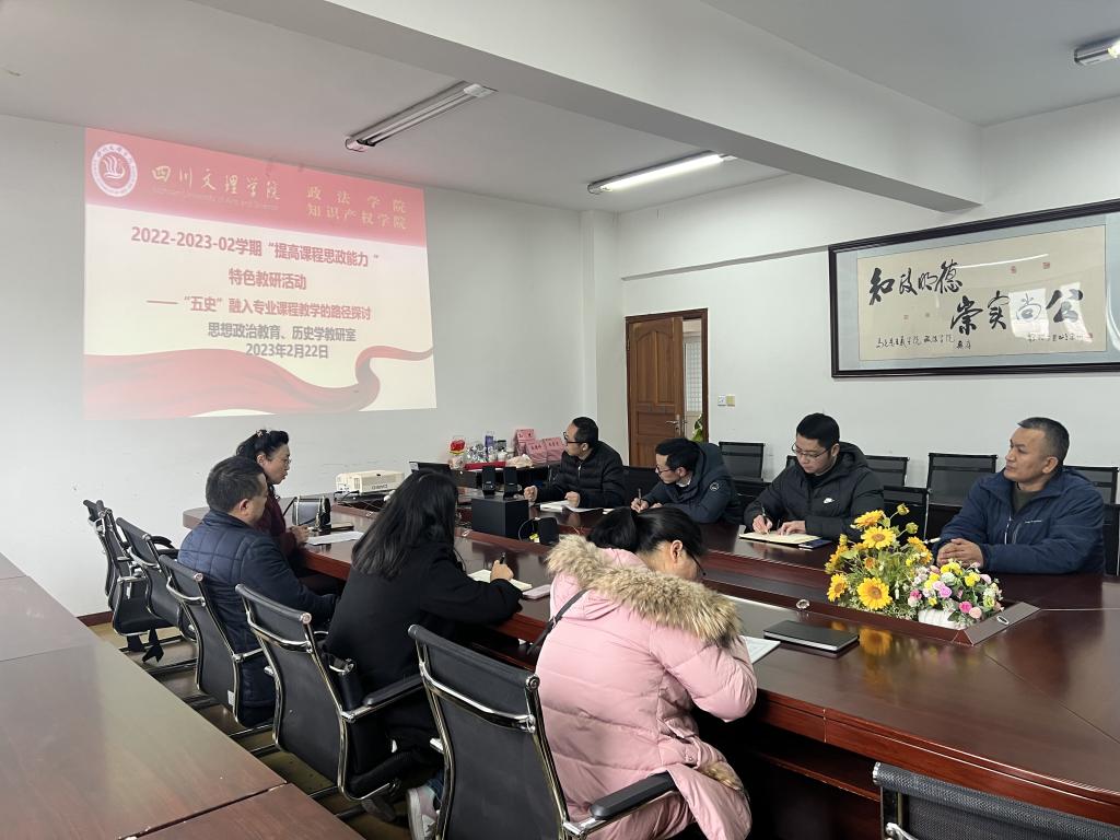 2023年2月22日,思想政治教育专业教研室与历史学专业教研室在博文楼611会议室联合召开以“提高课程思政能力”为主题的特色教研活动,会议紧紧围绕“五史”教育深度融入专业课程教学的有效路径构建而展开。