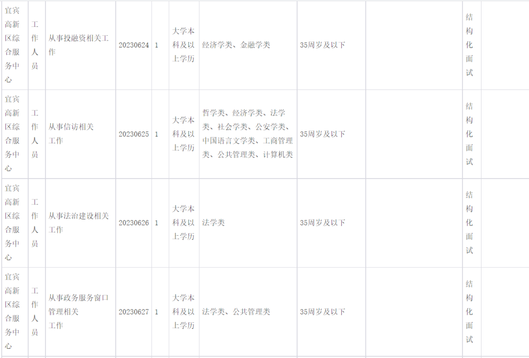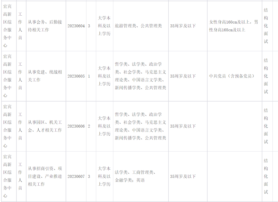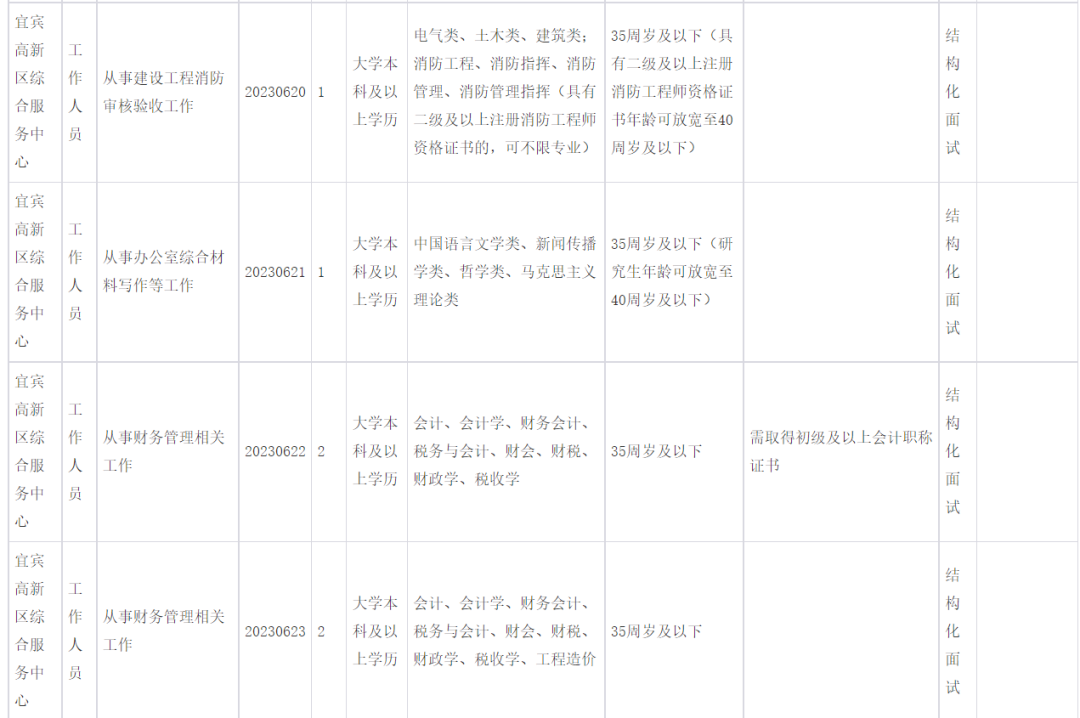 (法学类、公共管理类,7月8日截止)2023年宜宾高新区综合服务中心第二次公开招聘37名聘用人员公告(川文理就[2023]00802)