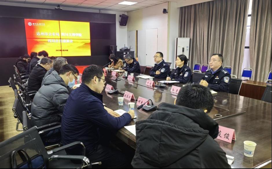 会议伊始,校地合作处处长姜约代表学校对达州市公安局各领导的莅临表示诚挚的欢迎,对达州市公安局给予学校的长期支持表示衷心感谢,学校将一如既往最大限度地支持达州公安工作。随后,双方就校局合作项目进行了深度思考并交流意见。