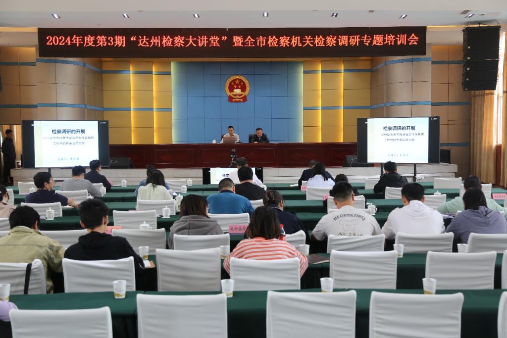 2024年4月25日,公司朱仕金博士应邀赴达州市人民检察院开展2024年度第三期“达州检察大讲堂”暨全市检察机关检察调研专题培训讲座,达州市人民检察院检察长陶成、副检察长张盛、政治部主任于蒲同全市检察机关调研工作人员一起听取了讲座。朱仕金博士以“中华优秀传统文化在检察工作中的传承运用”为线索,从检察调研课题的提出、检察调研项目申报撰写要点、检察调研的开展思路、检察调研报告书写要点四个方面系统讲解了检察调研工作开展的思路、方法与要点。讲座结束后,参会人员与朱博士就检察调研相关问题进行了交流,并就推进检察调研校地合作进行了沟通。本次培训讲座是公司与达州市人民检察院开展校地合作的重要内容,也是公司深入推进校地合作,服务达州法治建设的重要进程。